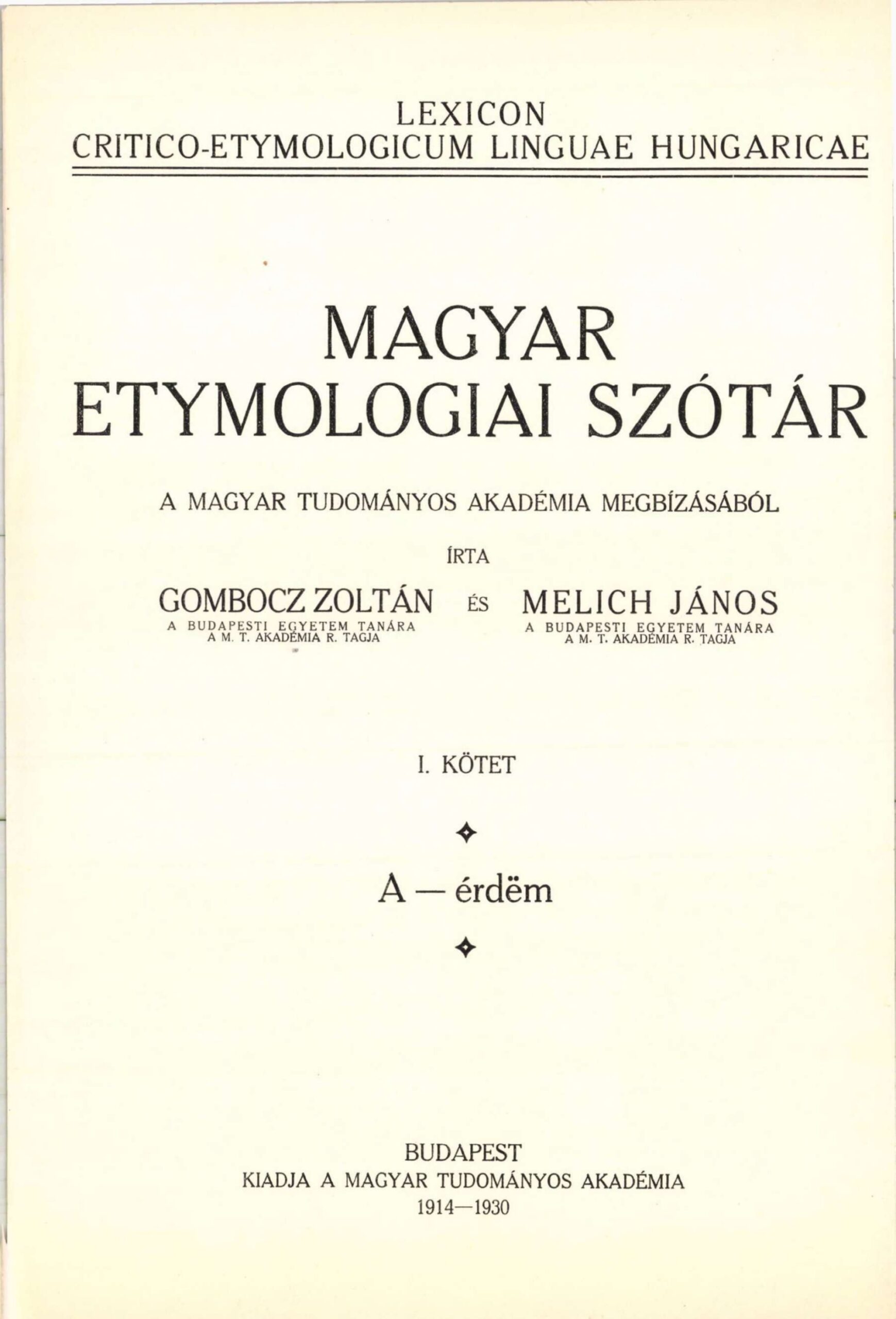 Megjelenik Gombocz Zoltán és Melich János munkája, a „Magyar etymologiai szótár” első kötete